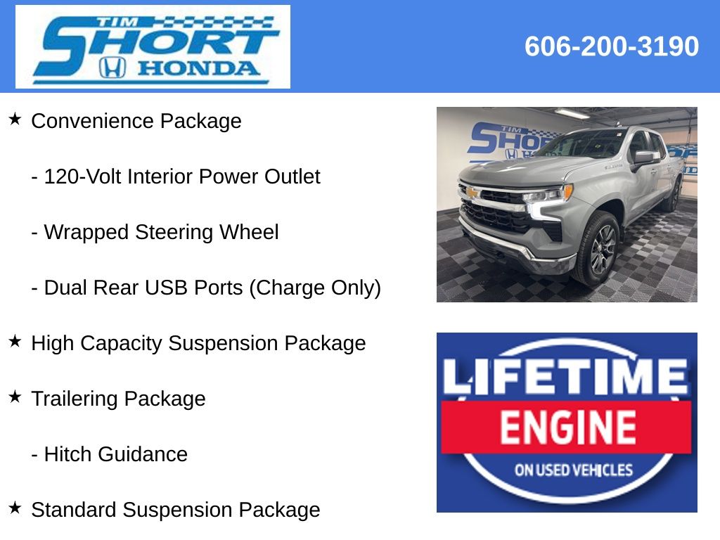 Take the Short Drive to Satisfaction to Tim Short Honda Ivel, Ky. Tim Short Honda is very proud to offer this stout 2024 Chevrolet Silverado 1500 in Slate Gray Metallic This vehicle has passed our comprehensive inspection and comes with the following features;