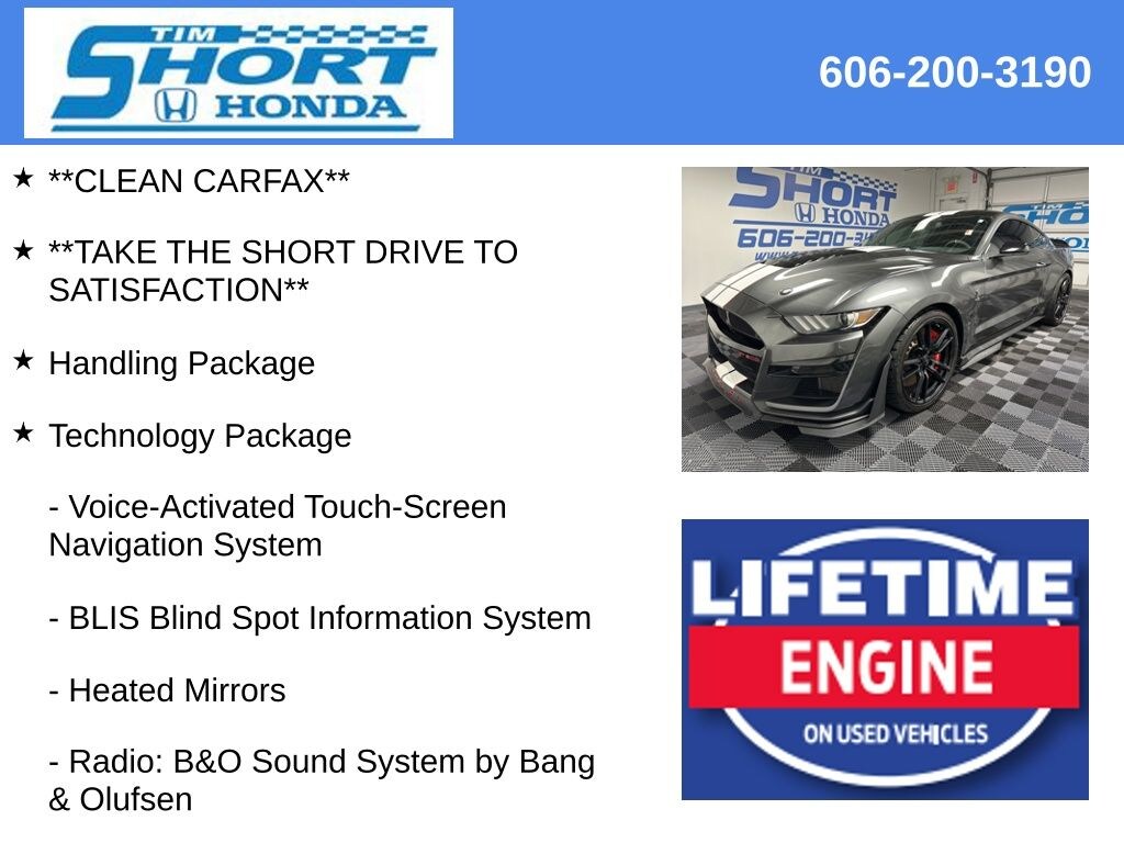Boasting a clean CARFAX history, this Mustang Shelby GT500 is a rare find. It comes equipped with a range of premium features that elevate the driving experience, including: