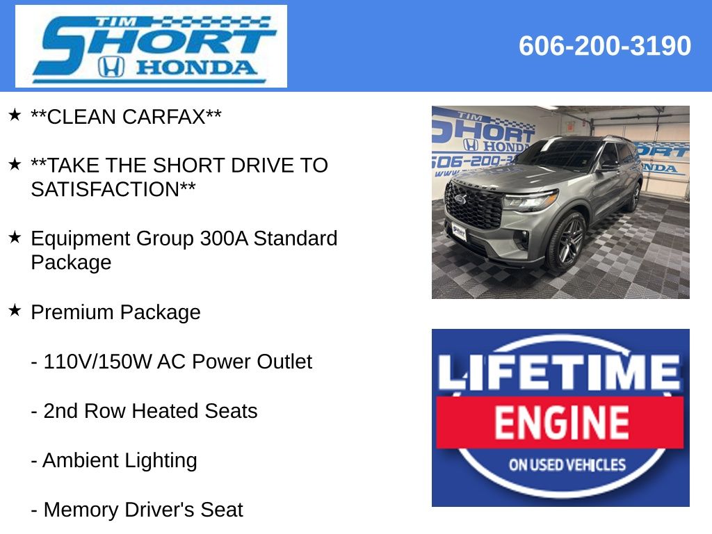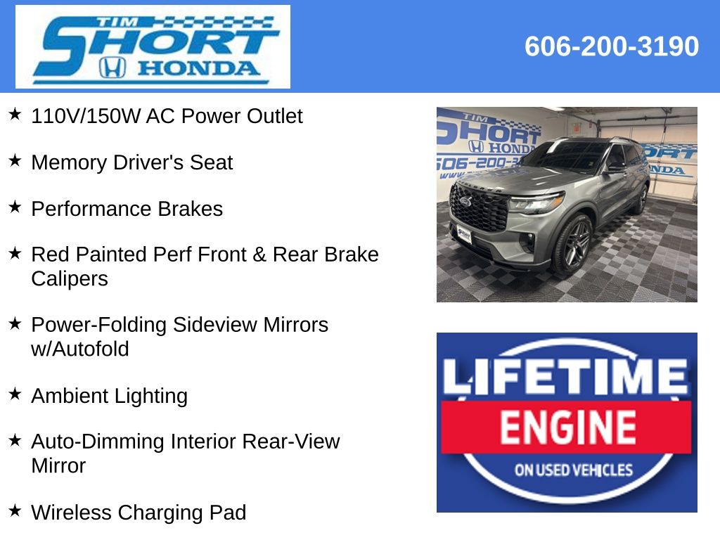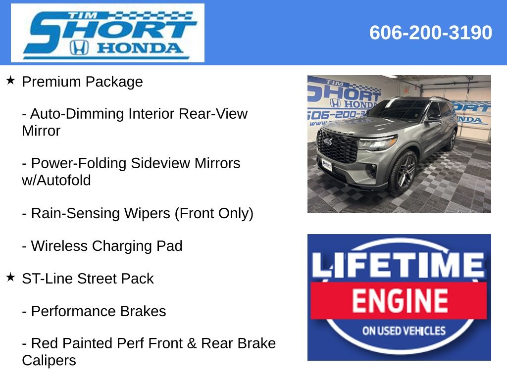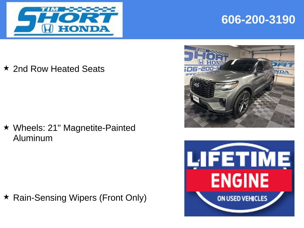 With its powerful performance, premium amenities, and striking good looks, this 2025 Ford Explorer ST-Line is a must-see. We invite you to experience it for yourself and discover why it's the perfect SUV for your lifestyle. Take the short drive to Tim Short Honda in Ivel, Kentucky, and let us earn your business.