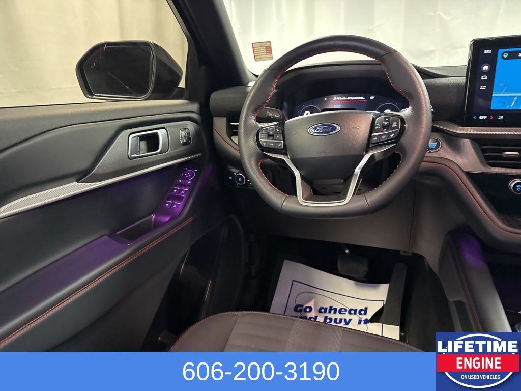 Advanced technology abounds, including a Navigation System, Apple CarPlay/Android Auto, and a suite of driver-assist features like Rear Parking Camera, Blind Spot Monitoring, and Lane Keeping Assist. Whether you're commuting, road-tripping, or tackling your next adventure, this Explorer ST-Line has you covered.
