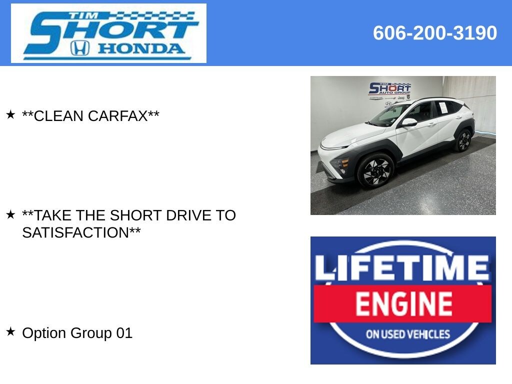 Take the Short Drive to Satisfaction to Tim Short Honda Ivel, Ky. Tim Short Honda is proud to offer this terrific-looking 2024 Hyundai Kona in Atlas White This vehicle has passed our comprehensive inspection and comes with the following features;