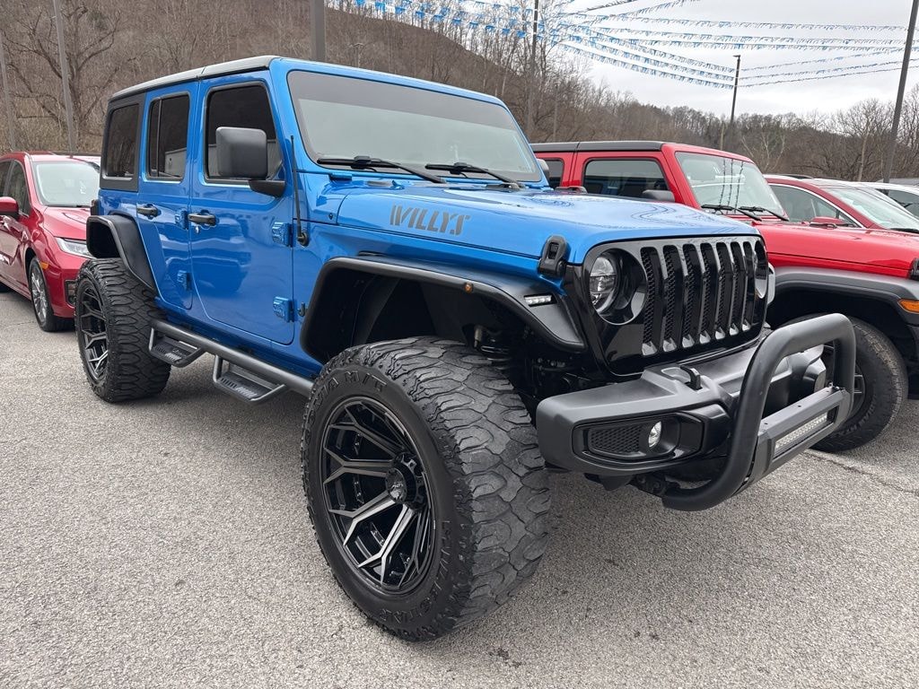 CARFAX One-Owner. Clean CARFAX. Priced below KBB Fair Purchase Price! **CLEAN CARFAX**, **TAKE THE SHORT DRIVE TO SATISFACTION**, *LIFT KIT*, 4-Wheel Drive Swing Gate Decal, 7.0" Touchscreen Display, 8.4" Radio & Premium Audio Group, Air Conditioning w/Auto Temperature Control, Air Filtering, Alpine Premium Audio System, Anti-Spin Differential Rear Axle, Apple CarPlay, Auto-Dimming Rear-View Mirror, Automatic Headlamps, Black Grille, Black Trail Rated Badge, Cluster 7.0" TFT Color Display, Deep Tint Sunscreen Windows, Emergency/Assistance Call, Front 1-Touch Down Power Windows, Front LED Fog Lamps, Google Android Auto, GPS Antenna Input, Integrated Center Stack Radio, Leather Wrapped Steering Wheel, LED Headlamp & Fog Lamp Group, LED Premium Reflector Headlamps, Matte Black Jeep Badge, Mold In Color Bumper w/Gloss Black, MOPAR All-Weather Floor Mats, Power Heated Mirrors, Quick Order Package 22W Willys, Radio: Uconnect 4 w/7" Display, Remote Keyless Entry, Security Alarm, SiriusXM Satellite Radio, Speed Sensitive Power Locks, Sun Visors w/Illuminated Vanity Mirrors, Technology Group, USB Host Flip, Wheels: 17" x 7.5" Moab Black Aluminum, Willys, Willys Hood Decal, Wrangler Decal.