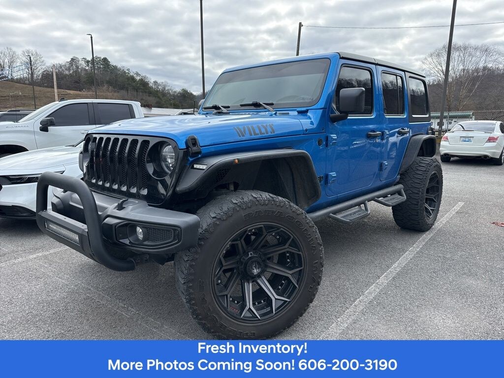 Recent Arrival! CARFAX One-Owner. Clean CARFAX. **CLEAN CARFAX**, **TAKE THE SHORT DRIVE TO SATISFACTION**, *LIFT KIT*, 4-Wheel Drive Swing Gate Decal, 7.0" Touchscreen Display, 8.4" Radio & Premium Audio Group, Air Conditioning w/Auto Temperature Control, Air Filtering, Alpine Premium Audio System, Anti-Spin Differential Rear Axle, Apple CarPlay, Auto-Dimming Rear-View Mirror, Automatic Headlamps, Black Grille, Black Trail Rated Badge, Cluster 7.0" TFT Color Display, Deep Tint Sunscreen Windows, Emergency/Assistance Call, Front 1-Touch Down Power Windows, Front LED Fog Lamps, Google Android Auto, GPS Antenna Input, Integrated Center Stack Radio, Leather Wrapped Steering Wheel, LED Headlamp & Fog Lamp Group, LED Premium Reflector Headlamps, Matte Black Jeep Badge, Mold In Color Bumper w/Gloss Black, MOPAR All-Weather Floor Mats, Power Heated Mirrors, Quick Order Package 22W Willys, Radio: Uconnect 4 w/7" Display, Remote Keyless Entry, Security Alarm, SiriusXM Satellite Radio, Speed Sensitive Power Locks, Sun Visors w/Illuminated Vanity Mirrors, Technology Group, USB Host Flip, Wheels: 17" x 7.5" Moab Black Aluminum, Willys, Willys Hood Decal, Wrangler Decal.