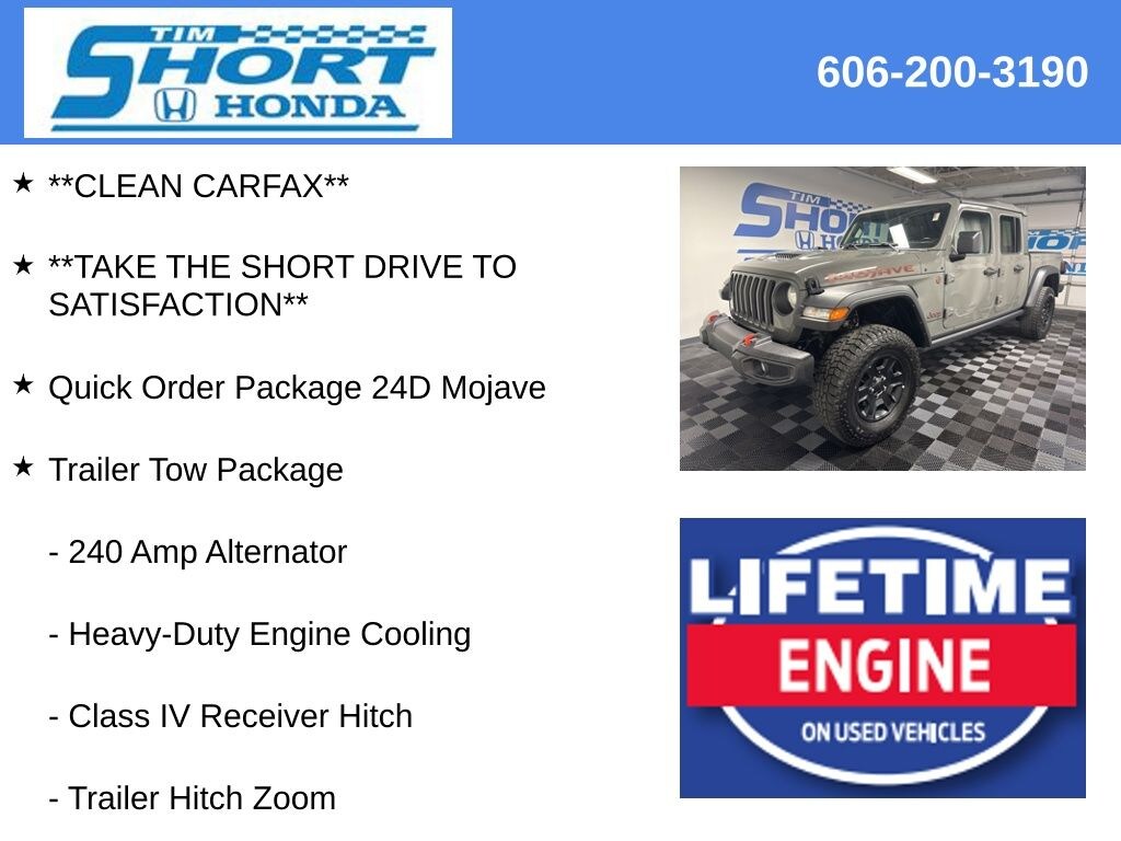 Take the Short Drive to Satisfaction to Tim Short Honda Ivel, Ky. Tim Short Honda is proud to offer this good-looking 2023 Jeep Gladiator in Sting-Gray Clearcoat This vehicle has passed our comprehensive inspection and comes with the following features;