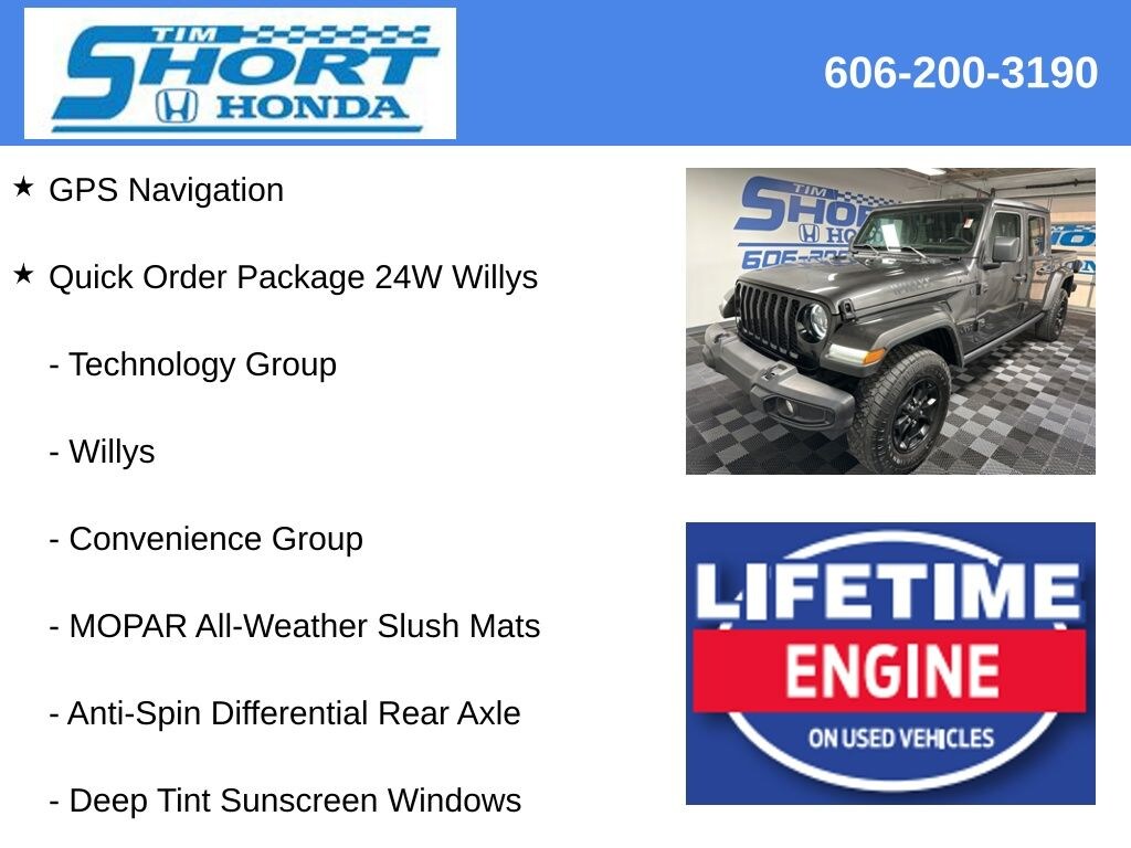 Take the Short Drive to Satisfaction to Tim Short Honda Ivel, Ky. Tim Short Honda is pumped up to offer this handsome 2023 Jeep Gladiator in Granite Crystal Metallic Clearcoat This vehicle has passed our comprehensive inspection and comes with the following features;