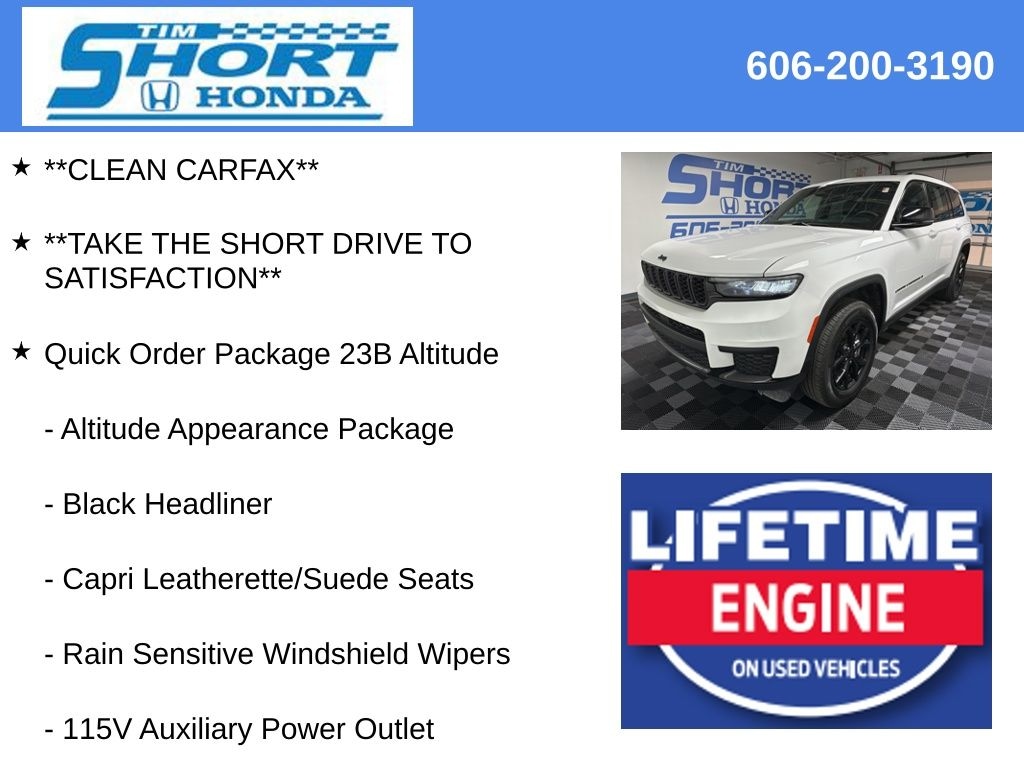 Take the Short Drive to Satisfaction to Tim Short Honda Ivel, Ky. Tim Short Honda is pumped up to offer this great-looking 2024 Jeep Grand Cherokee L in Bright White Clearcoat This vehicle has passed our comprehensive inspection and comes with the following features;