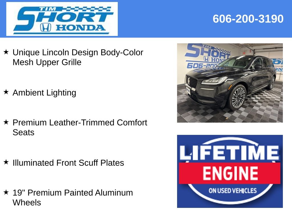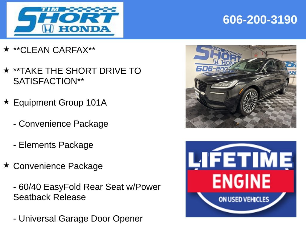 Take the Short Drive to Satisfaction to Tim Short Honda Ivel, Ky. Tim Short Honda is excited to offer this good-looking 2022 Lincoln Corsair in Infinite Black Metallic Clearcoat This vehicle has passed our comprehensive inspection and comes with the following features;