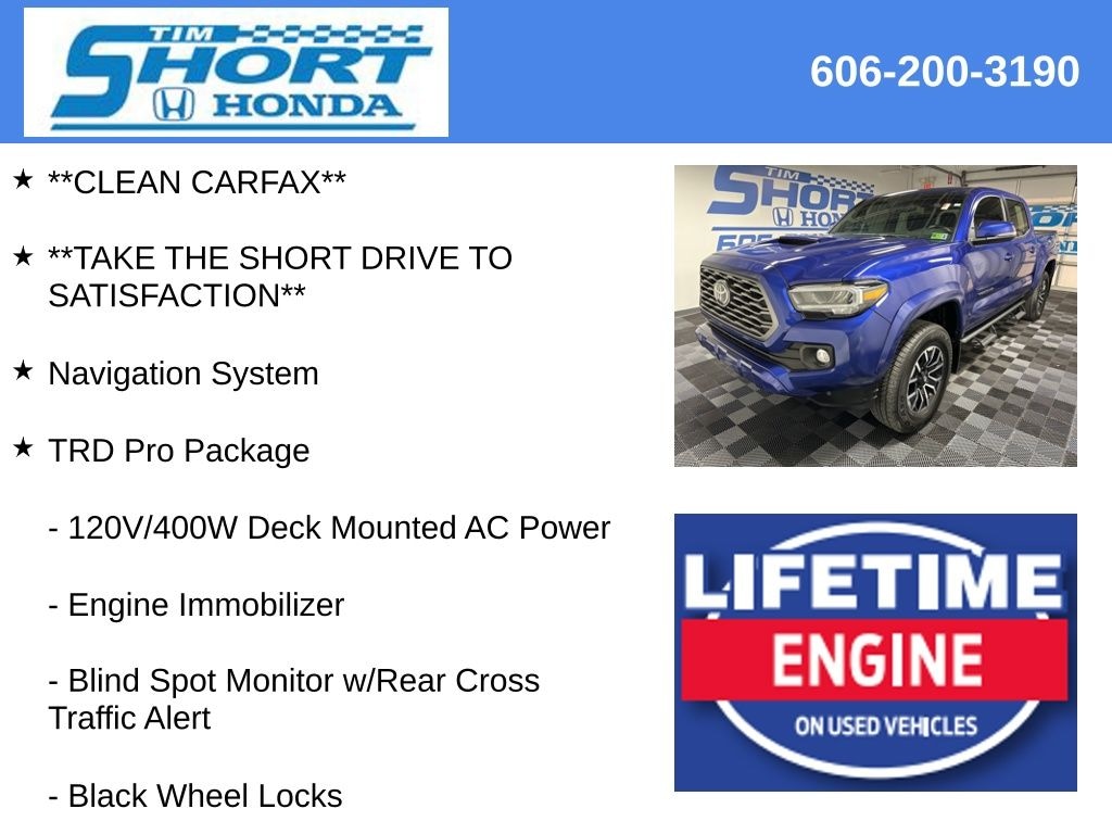 Take the Short Drive to Satisfaction to Tim Short Honda Ivel, Ky. Tim Short Honda is excited to offer this rock solid, reliable 2023 Toyota Tacoma in Blue Crush Metallic This vehicle has passed our comprehensive inspection and comes with the following features;
